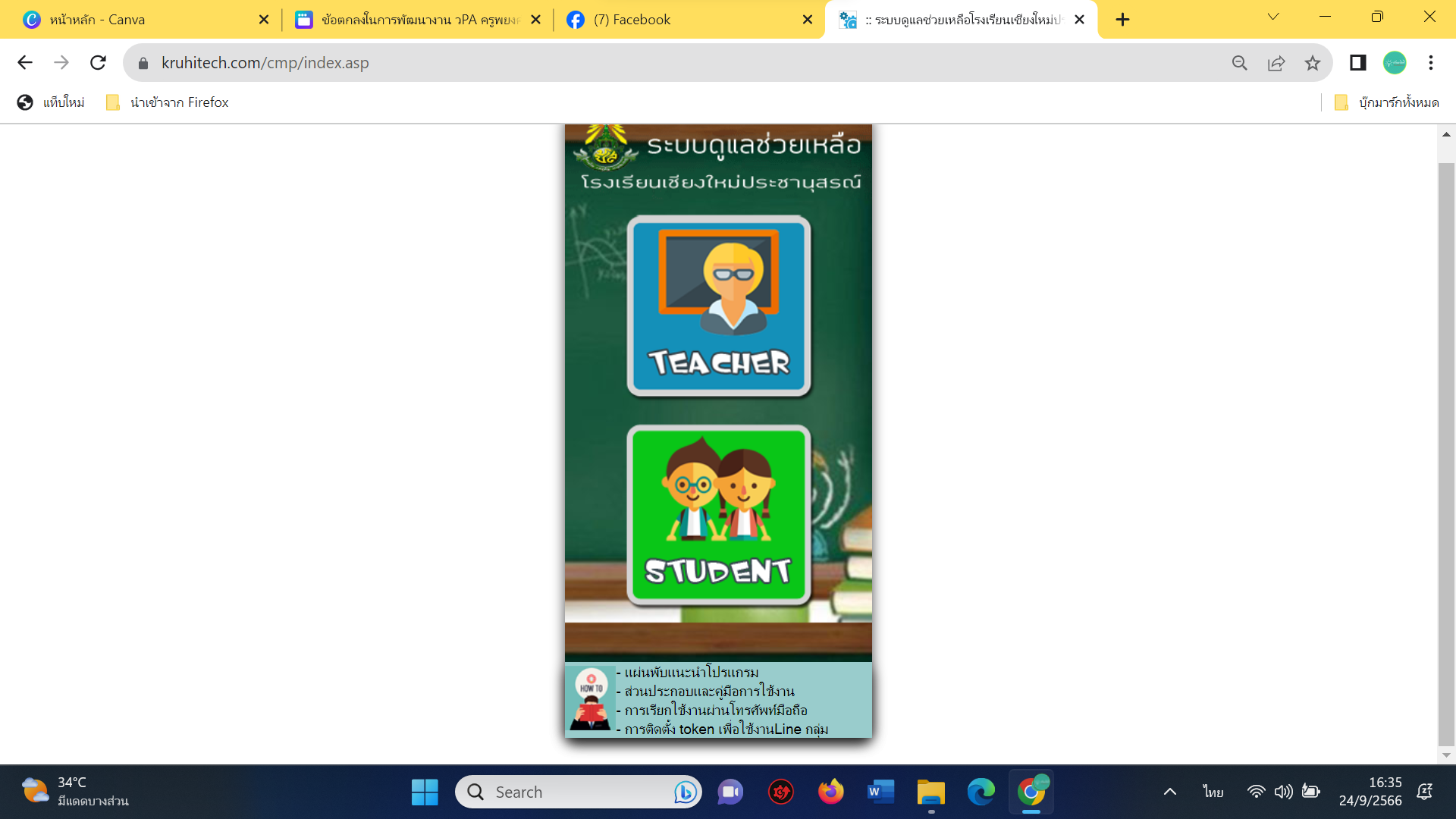 - Admin ระบบดูแลช่วยเหลือโรงเรียนเชียงใหม่ประชานุสรณ์