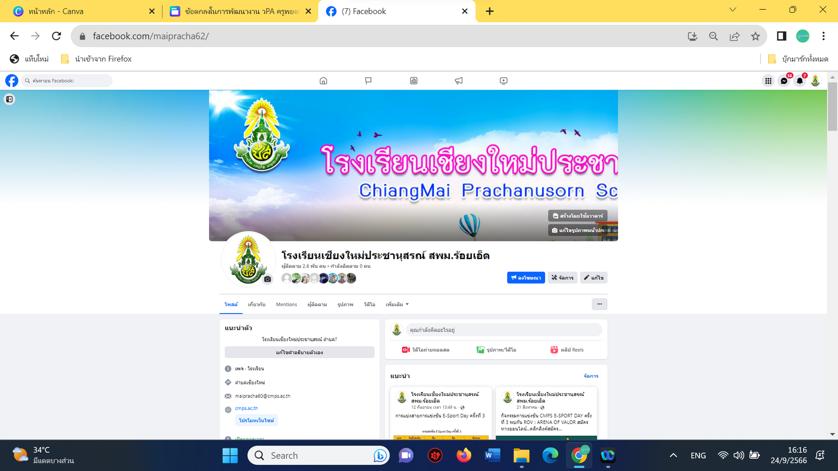 - Admin เพจโรงเรียนเชียงใหม่ประชานุสรณ์ สพม.ร้อยเอ็ด