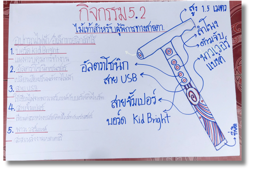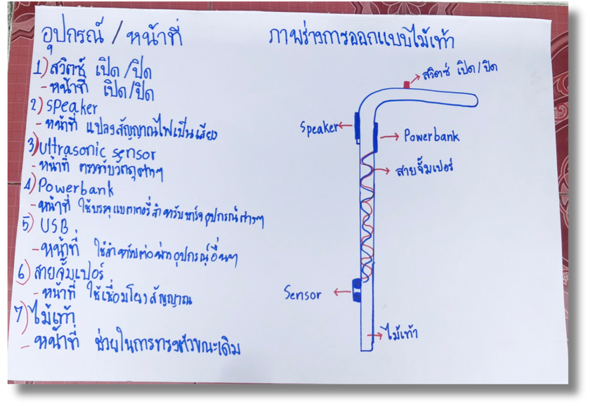 ภาพร่างการออกแบบไม้เท้าสำหรับผู้บกพร่องทางการมองเห็น
