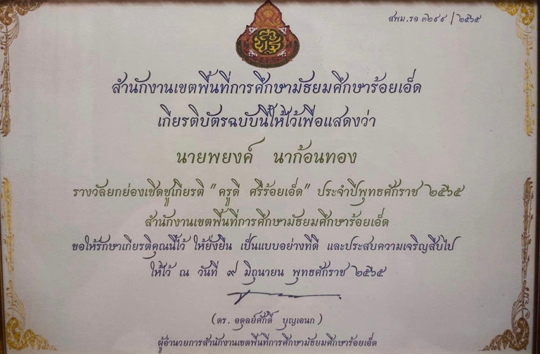 รางวัลยกย่องเชิดชูเกียรติ "ครูดี ศรีร้อยเอ็ด"
